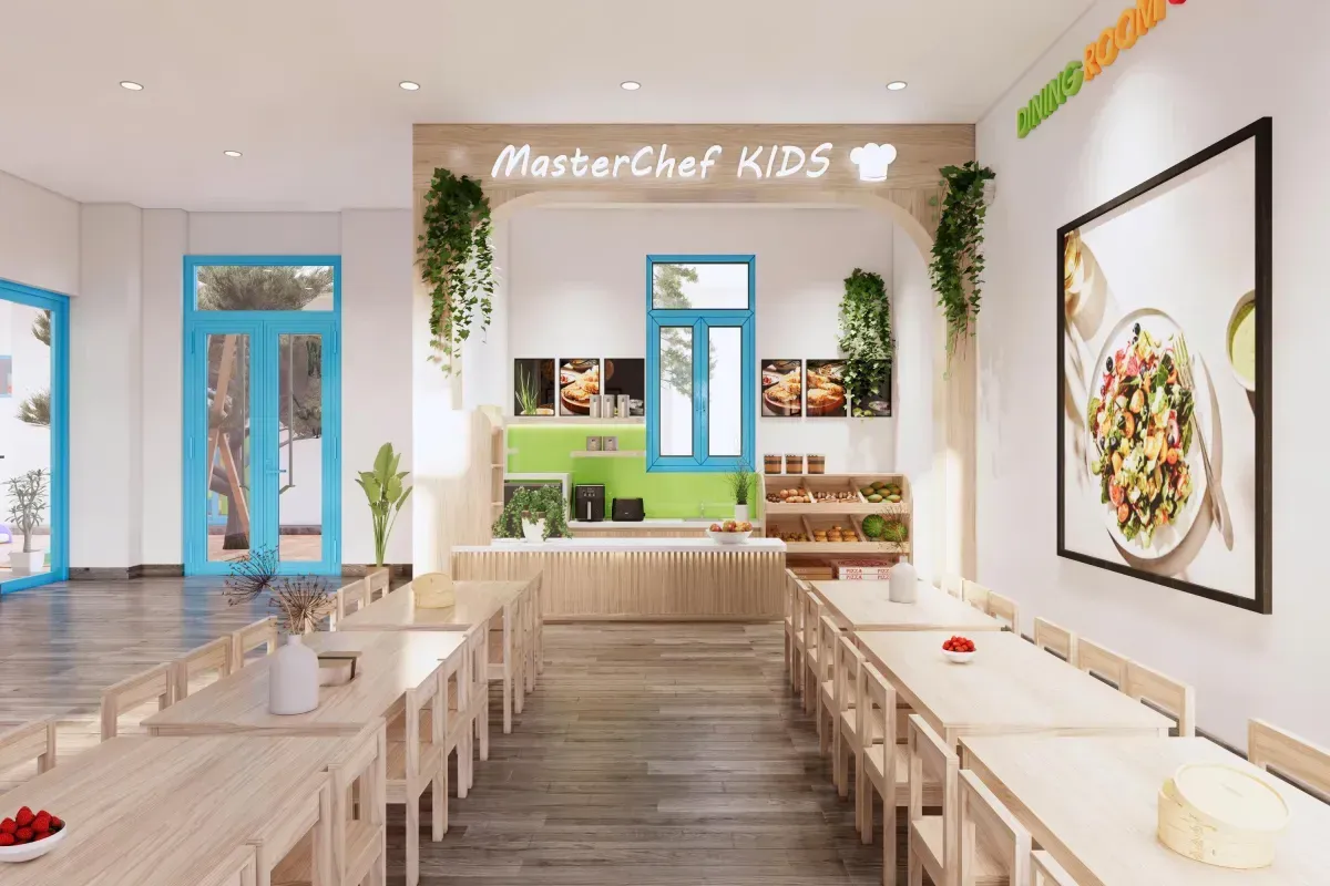 Tất cả các món ăn trong các bữa chính, bữa phụ do Đầu bếp của trường chế biến, không sử dụng các món ăn được chế biến sẵn, không sử dụng chất bảo quản.